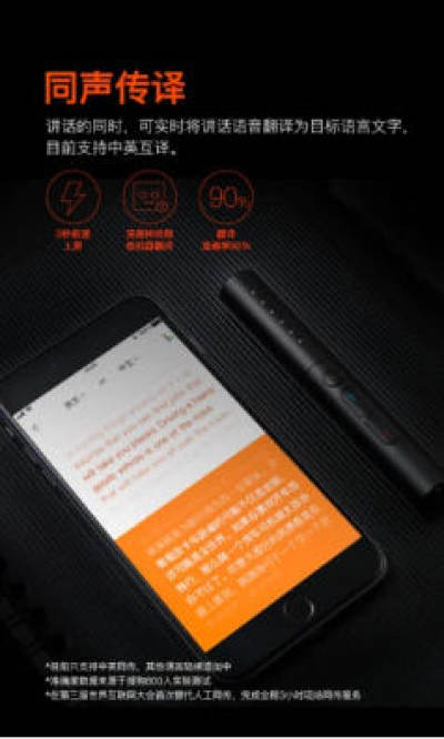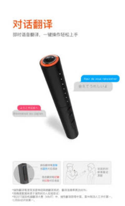 搜狗录音翻译笔,是一款既能录音又能翻译的智能硬件产品。采用业界最先进的神经网络机器翻译技术(NMT),更懂国人语言,翻译结果更加准确。通过将搜狗速记翻译笔与手机APP连接,可实现远比手机出色的远距离拾音。