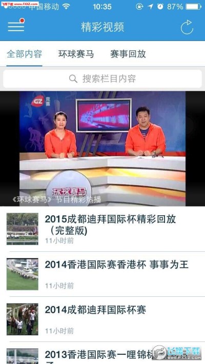 4、精彩视频栏目为您独家推送《环球赛马》节目视频,《环球赛马》力求通过介绍赛马运动的来龙去脉,追述赛马运动的历史踪迹,挖掘赛马故事的闪光点,全方位展示赛马运动的独特魅力,满足观众在收看过程中对赛马文化环球领域的不断追求。