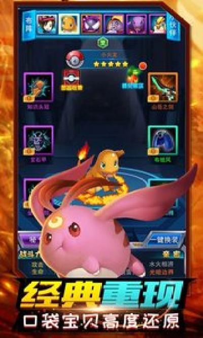 超经典小精灵回归,原汁原味重现原著技能,还有特色原创技能、传说精灵专属酷炫技能,根据属性克制BOSS,多种战术策略搭配,让我们一起打倒“火箭队”,展开宿命の对决;