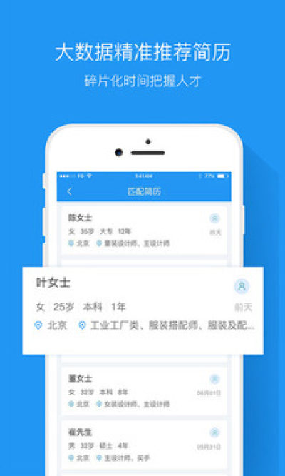服装人app是一款由cfw中国服装人才网官方推出的手机客户端,这款软件主要是针对服装行业提供的求职招聘服务,在服装人app上用户可以招聘也可以找工作,针对不同的用户群体提供相应的功能,工作岗位多,求职人员多,需要的快来下载吧!
