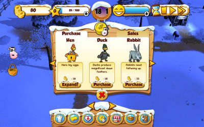 游戏中玩家将会经营一家属于自己的农场,在最开始只有一只鸡一些饲料和一百枚金币,利用这些慢慢扩大农场的规模,饲养更多的动物,收获更多的农产品。游戏中动物可爱的造型是萌点之一。