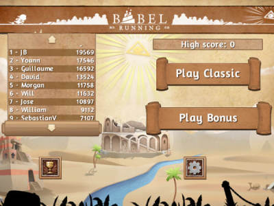 《巴别塔狂奔 Babel Running》是一款横版卷轴跑酷游戏。你的任务是把尽可能多的石头投放到巴别塔的建设中,以此来更接近神。当心沿途的机关障碍和神降下的愤怒,注意回避他们,保护珍贵的石料。游戏包含有排行榜,在这个无尽的旅程中击败你的朋友。