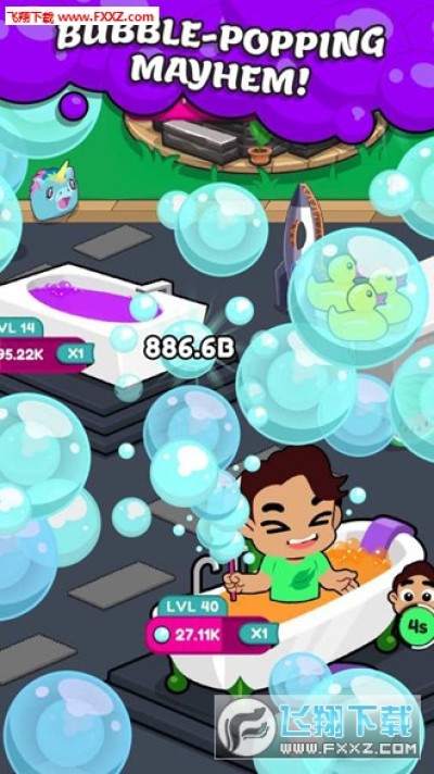 加入番石榴果汁,在充满乐趣的全新冒险中赚取数十亿泡泡!建立数百个浴缸来增加你的泡泡!将古怪的木制洗衣桶,时髦的游泳池和巨大的泻湖填满各种古怪的液体!缔造一个肥皂帝国,开启疯狂升级模式,然后在这个充满泡沫的节日中登上巅峰!