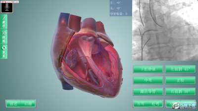 这款具有3D效果的“三维心脏介入及学术交流平台”在国内尚属首创,帮助用户快速建立三维心脏解剖与二维影像之间的关系;初步熟悉心内导管操作;以及专业的心脏电生理知识的交流平台。这种新型诊断与治疗心血管疾病技术,无需开胸,在影像学方法的引导下,经过穿刺体表血管,借助某些器械,将导管送到病变部位,通过特定的心脏导管操作技术对心脏病进行确诊和治疗的诊治方法,它是目前较为先进的心脏病诊治方法。