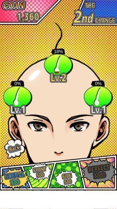 生发地区分为三块,游戏会根据三块投出的生发剂量,改变男人的发型