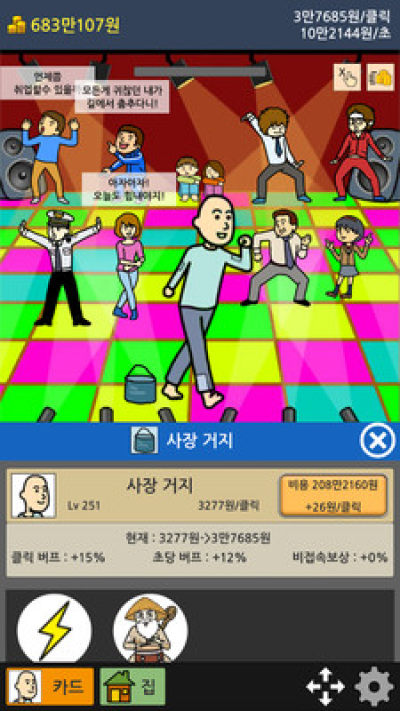 通过点击屏幕可以获取现金,利用现金升级点击收入能力。