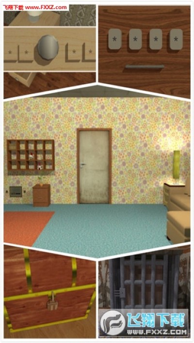 用钥匙2打开地上的白板,得到钥匙3,用钥匙1和3打开右边柜子和里面的罐子,得到钥匙4,开门过关。