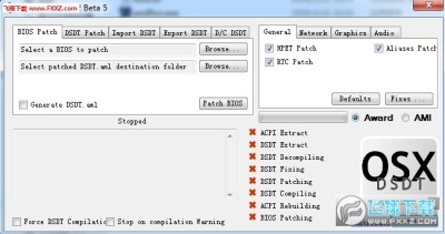 选择一个bios制作dsdt.aml,选择bios文件和指定输出dsdt.aml目录之后,选中GenerateDSDT.aml,然后按下Patch Bios按钮即可,输出目录不可以是bios目录,否则会出错
