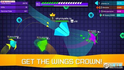天空ROYALE.IO游戏与简单的控制!瞄准和发送你的导弹与一个按钮点击其他战争飞机摧毁它们。