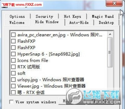 2、切换到 Hide Window 标签,把要隐藏的窗口前面的勾打上,那么这个时候那个窗口就会隐藏起来。如果你想隐藏所有,可以点击 Hide All ,最后点击确定