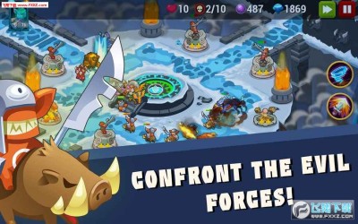 使用各种各样的力量和能力打败一波又一波的威胁,游戏有30多个关卡,取得全部关卡胜利并解锁秘密政权。通过精灵巨人树林,广阔骨之谷,郁郁葱葱的雪山谷,石塔天空寺和实时魔法森林,面对一波波残酷敌军,投掷者元素地精,巡航骷髅,巨兽和更多敌人。