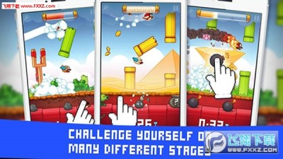 游戏灵感来自著名的像素鸟,但是玩法截然不同。游戏的主要目的是用最快的速度将飞行中的像素鸟打下来,第一关只能用石头打,第二关可以用炸弹,后面的关卡陆续增加各种新奇的道具。