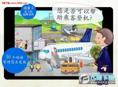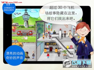 三个场景包括大约 90 个隐藏的动画,在这里 3 至 6 岁的幼儿有机会发现各种惊喜,了解飞机场的各个区域。