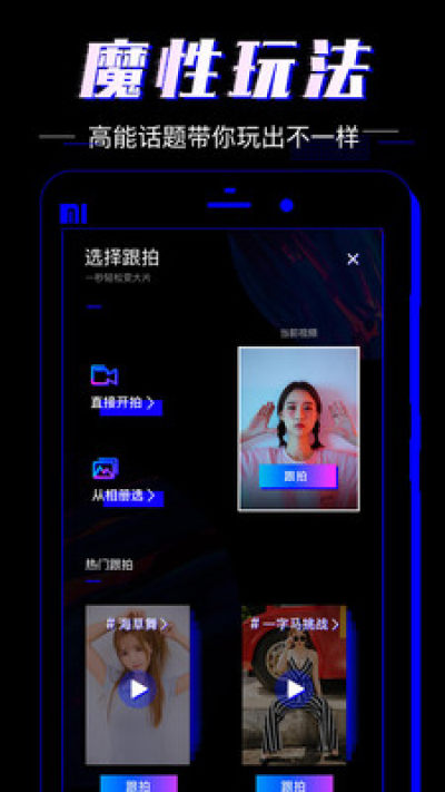 一键跟拍达人超炫舞技、海量音乐任你挑选、酷炫特效给视频加逼格、还有自动美颜+kuso贴纸+质感滤镜,左手仙女右手大师不是梦!!