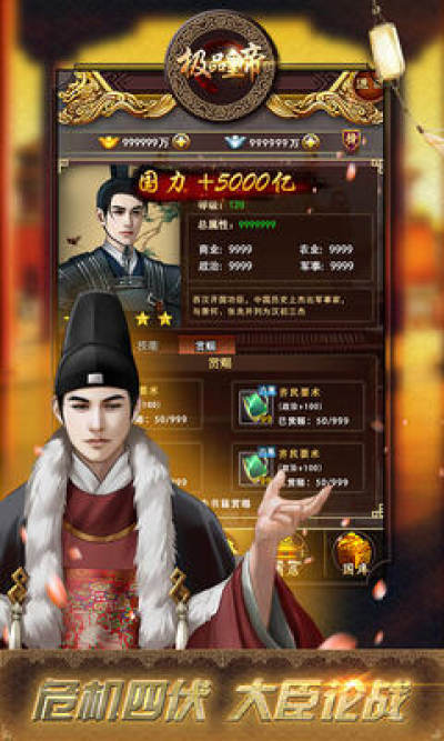 《极品皇帝安卓版》是一款的古风题材的养成类手游,游戏中玩家将成为一代帝王,在游戏中经营自己的国家,让国家不断的强大,收集各种美人组成自己的后宫,招募贤士良将不断扩大自己的领土,还可以微服私访体验民情,喜欢的玩家快来下载体验吧!