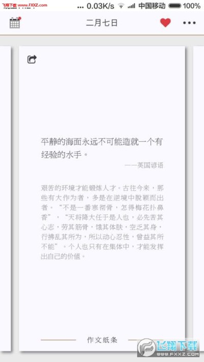 作文纸条app是一款非常好用的手机摘抄记录的软件,主要的功能作用有点类似于读书时候的摘抄本,在作文纸条app上用户可以随时看到好用的素材就能揭露下载,同时还可以随时提取阅读哦,非常方便,感兴趣的快来下载吧!