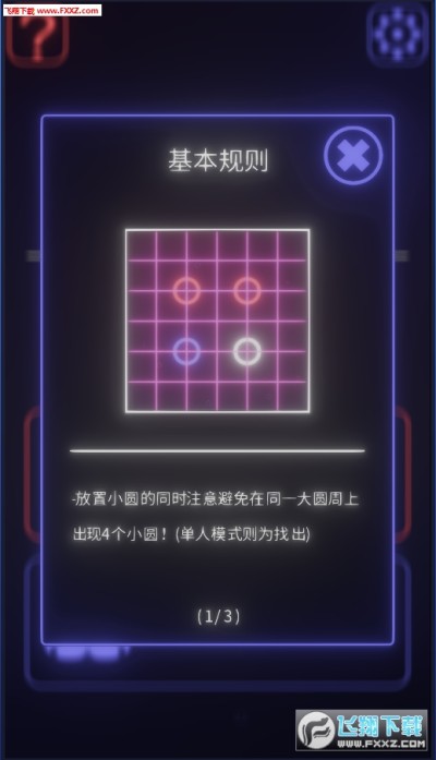 《共圆中文版》是一款霓虹风格的休闲益智类手游,游戏采用简单烧脑的玩法,玩家需要在方格中下子,保证自己的棋子不和其他的棋子共圆,简单烧脑的魔性玩法玩家不仅可以挑战关卡,还可以和好友一起联机对战,喜欢的玩家不要粗过哦!