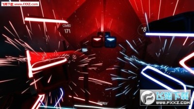 3.在这款游戏中你只需要挥动你的光剑劈向那些障碍物。