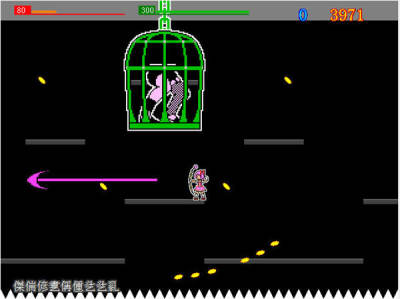 左右移动,Z键出枪,X键跳跃。红条是血,绿条是灵魂宝石纯净值,蓝色数字是杀掉的使魔数,橙色数字是时间。掉进深渊会直接挂掉。被魔女吃了可以挣脱。