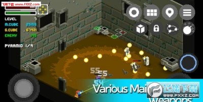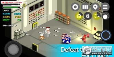 1、玩家操作你的方块英雄,攻击各式各样的敌人;