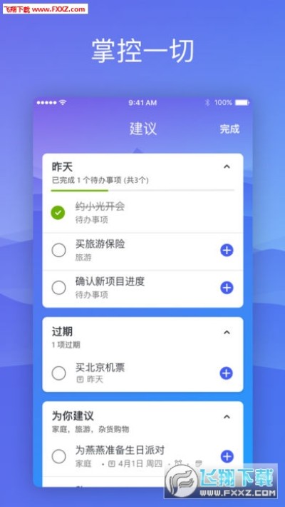 你可以从手机或电脑快速添加、管理和安排你的待办事项;也可以为重要的待办事项设置提醒和截止日期。你还可以为必需每天处理的待办事项设置重复提醒,以确保不会忘记任何事情。