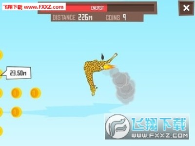 玩家要在游戏中控制主角长颈鹿,让它从高台中滑出去,一路收集金币并尽可能飞得更远。长颈鹿将在空中做出各种反常规的动作,直到能量耗尽落地而终。 、