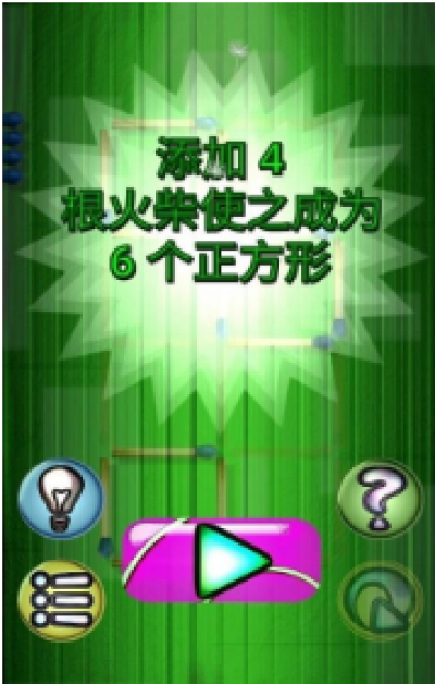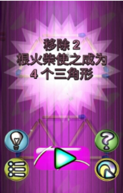 小小火柴的作用不容小视--不仅仅是生火,它的组合能够充分考验人的思维能力; 这个游戏里,搅动你的大脑,在规定的步数内,移动、移除或者添加火柴,直到组合成特定的样式来解开谜题,从而拼出一幅幅的珍贵图案。一起来试试吧! 如果实在想不出来,点击“暂停”按钮,在“暂停”页面将会出现通关答案。