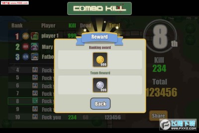简单的操作过程,结束战斗后可以在排行榜上看到自己的排名;