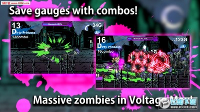 在这里你要操作着公主殿下打击僵尸,更可使用寒峰和钢镚对僵尸造成毁灭打击,合理的运用自己的攻击和技能可以有效的消灭全部的僵尸。