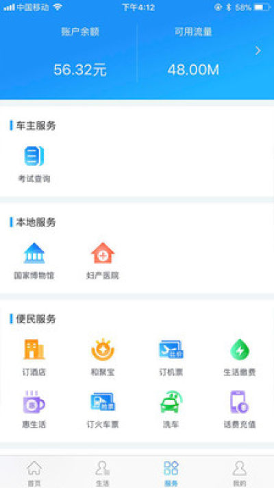提供多种与便民生活相关的智能服务。如:生活缴费、天气预报、违章查询等。