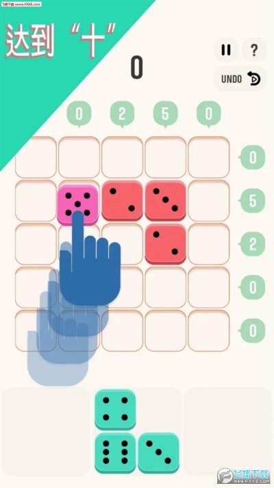 将骰子拖拽到棋盘上,在任何一行或者一列中达到“10点”时,你就能够获得分数,尽情地来玩吧!