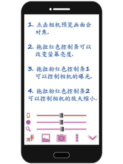 4. 拖拉粉红色控制条2 可以控制相机的放大缩小. (也可以用两指在预览画面中缩放)