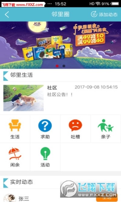 在“社区生活”板块,社区居民可通过APP查看社区政务、便民信息,报名参加各类活动,进行线上投票评比等。在“邻里圈”版块,邻居之间还可发帖、发私信、交流置换物品等。