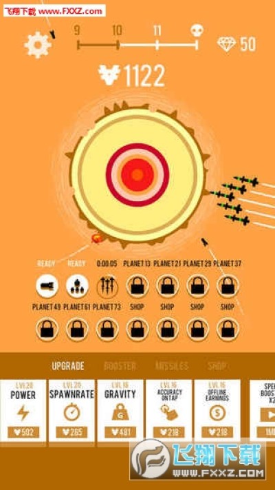 收集金币可以购买更高级别的飞船和导弹!