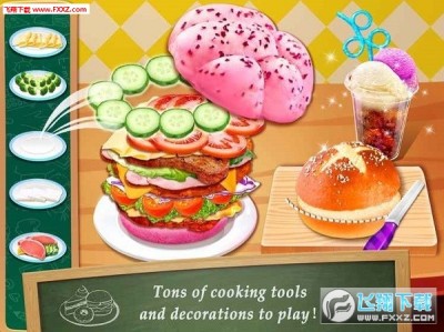 5、可尝试许许多多的食材以及装饰:水果、糖果、糖屑、牛奶、面粉、盐、白糖、黄油、面粉、酱汁、奶酪、蔬菜、肉类、玉米粉、汉堡面包、芝麻、米、水、冰块、冰淇淋、汽水等等。