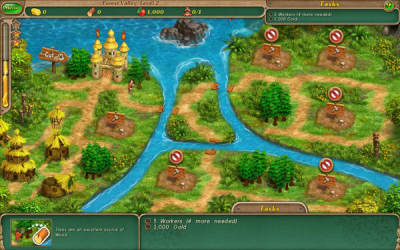 游戏属于传统的时间管理类游戏,游戏中玩家将会指挥工人建造房屋、收集资源,在最短的时间内完成每个关卡给出的任务。游戏里的资源不是自动获得的,当获得资源时需要你用鼠标划过收集。