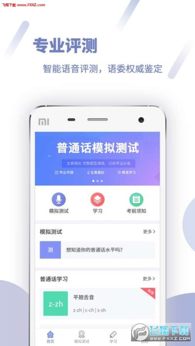畅言普通话APP,专业的普通话水平模拟测试与学习软件,使用与国家普通话水平测试系统相同的智能语音评测技术,涵盖正式考试全题型,想要说一口流利的普通话,轻松考证过级,就用畅言普通话APP!