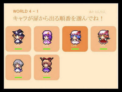 游戏中的小角色们会自己左右移动,遇到爬不过去的障碍物就会折返。小家伙们最多可以爬上一级那么高的台阶。当然,各个角色的移动速度是有区别的,不能指望帕琪和西瓜一样能跑。持有符卡的情况下按下A键即可发动。符卡只分不同等级,每个角色都有独特的对应等级的符卡。灵梦的爆炸符纸可以炸毁身周一格范围内的所有方块,但是不会对敌我双方的人员造成伤害。