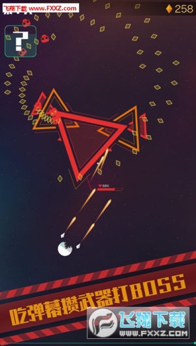 吃弹幕攒能量,攒满能量即可随机出一种武器或无敌时间!武器进攻Boss,无敌啃爆Boss!