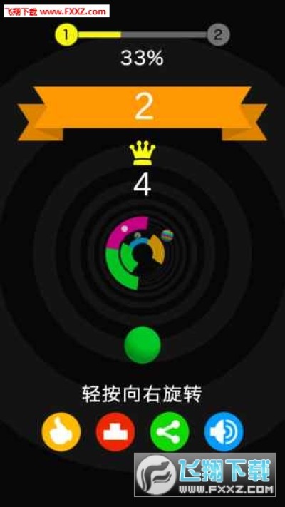玩法很简单,按住屏幕彩球向右旋转,松手自动向左旋转。