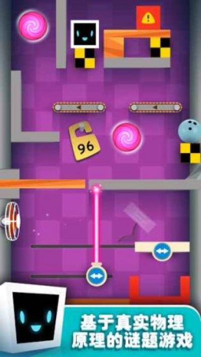 使用12个物理对象的属性完成所有的谜题:测试立方体,保龄球,弹簧蹦床,炸药,活动平台,输送机,风扇,气动管,激光,入口,动态锯和开关按钮!