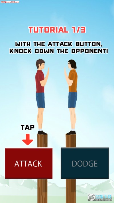 简单有趣的小游戏,双人站在木桩上互推,把对手击落即可获胜。只有一个攻击键和一个防御键,非常简单。支持双人同屏模式,跟基友对战打发时间也不错。