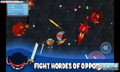 一款io竞技类手游,玩家在游戏中将会化身为超级战士,需要来利用手中的屠刀将一个个对手都杀死,从而来吞噬他们的残骸,让自己的身躯不断增大的时候,自己手中的屠刀也会不断增大,让自己的战斗力不断提升哦!但是需要小心的是,不要去挑战比大太多的战士哦!那样你的获胜几率太低了!你准备好这次的挑战了吗?