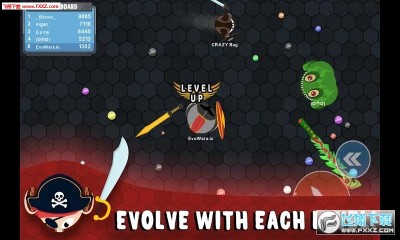 《进化战争大作战 EvoWars.io》是一款有趣的大乱斗休闲娱乐游戏。游戏将大乱斗玩法与角色成长相结合,玩家在游戏中将控制一名挥动武器的角色与敌人展开战斗,除了攻击敌人之外你还可以搜集场地上的各色小球来增加你的经验条,当经验条充满时你将会升级并且武器增长角色变大哦!
