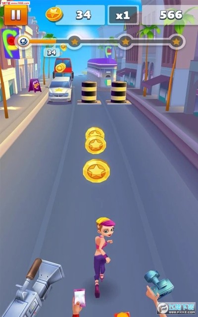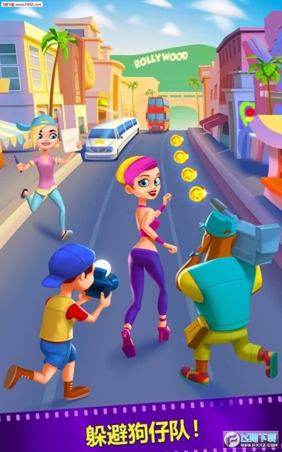 在游戏中你会扮演好莱坞明星,在前进的同时注意躲避周边的狗仔,不要被相机抓拍到哦,尽可能的拾取更多金币。