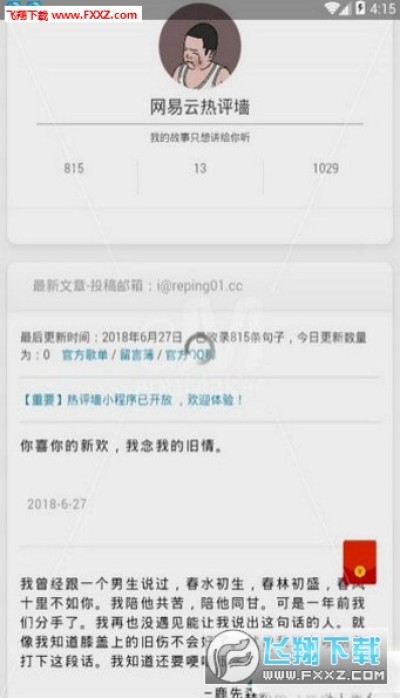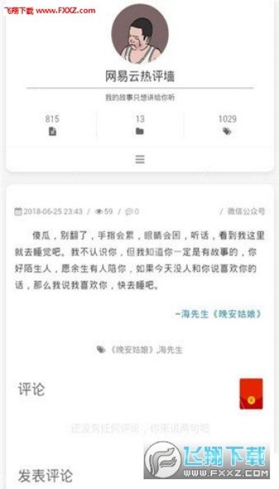 网易云热评墙app主要收集网易云音乐里面歌曲的热门评论在这里做与展示,网易云热评墙手机版还收集一些微博上的话、矫情的句子与一些名人语录;