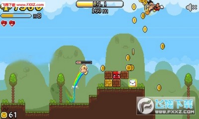 「欢乐奔跑HappyDash」是一款像素动作游戏,游戏玩法采用的是传统的无限奔跑,,玩家要控制着小不点主角,利用彩虹力量去通过重重难关。游戏一些场景会随着流程的推进而发生变化,玩家所面对的机关陷阱也会发生巨变。另外游戏还设有了经验值系统,当击破敌人时玩家便会获得一定的经验来进行升级,升级后玩家的力量就会有所上升,这样一来可以连续杀敌的彩虹力量也会得到更长的持续时间。