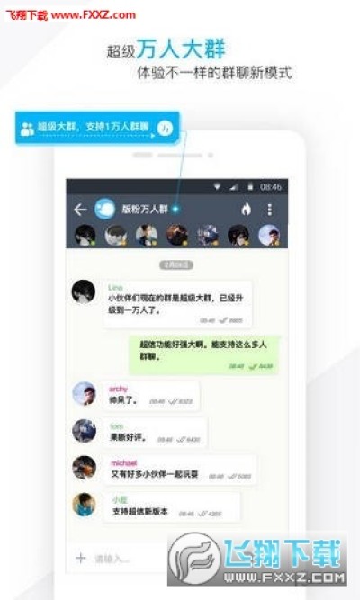 -下载安装超信后,只需输入手机号码及验证码,即可与手机通讯录上的好友聊天。