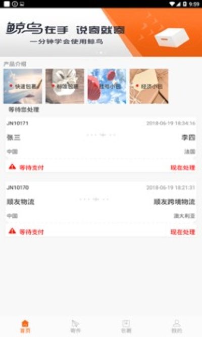鲸鸟app是一款物流软件,这款软件是一款国际类的快递平台,提供全球快递服务哦,而且鲸鸟app上提供的都是准时达、速度配送的服务哦,这里寄件简单方便,整合各大物流平台,还有全天客服在线哦!