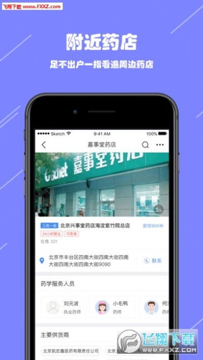 帮助了解药店详情,药师信息、主要供应商、24h售药、医保等;